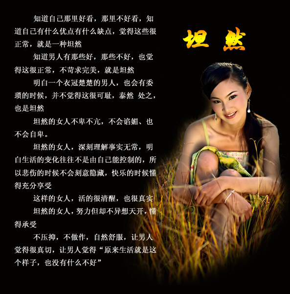 女人最能打动人的就是温柔,不是矫揉造作,像一只纤纤玉手,知冷知热,知轻知重,理解男人的思想,体察男人的苦乐,只轻轻一抚摸,就给男人疲惫的心灵以妥贴的抚慰。