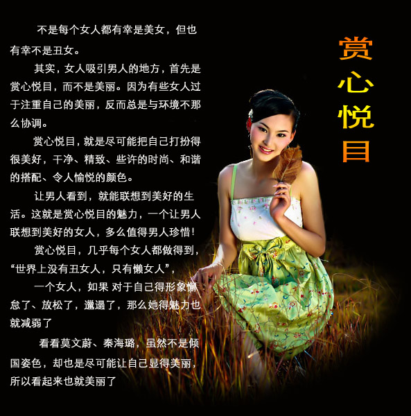 女人味是一股意味。是神秘的,缓缓的,动人心弦,不可捉摸,深入骨髓,令人意乱情迷。它没有形状,没有定势,是润物细无声的诱惑,是若隐若现的美景,是朝思暮想的探究,是以少胜多的智慧。那一举一动,一言一语,一瞥一笑,至善至美,可谓万绿丛中一点红,动人春色不需多。