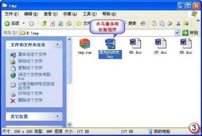 实例:如图2所示,这是笔者制作的木马服务端安装程序,它在电脑上显示为“漂亮的妹妹.bmp”。如果你把它当作一个图像文件来打开的话,笔者的木马也就在你的电脑中安营扎寨了。