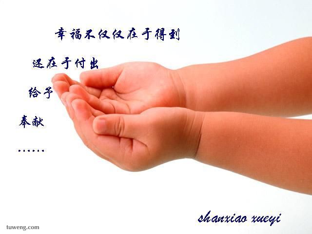 有句话说:“穿鞋的就比光脚的幸福”,虽然穿着鞋的未必要比光着脚的过得有多好,但只要自己认为幸福,别人就无法剥夺你享受幸福的权利。你能够有一份正确看待事物,看待问题的好心太,你就会比别人多一份快乐和幸福:有人很富有,却找不到快乐,有人生活贫穷,却快快乐乐,有人一日三餐大鱼大肉,却食之无味,有人一年到头粗茶淡饭,也津津有味。