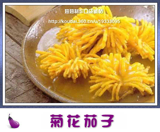 3)勺内放底油烧热,放番茄酱略炒,再入葱末,姜末,汤,白糖,胡萝卜丁,盐,味精烧开,用湿淀粉勾流芡,加明油,烧淋在炸好的茄花眼即好。 关键: 切茄花时要深而不透,沾面粉时要把茄花沾均匀。